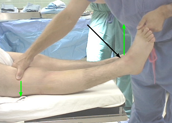 Hold the femur down on the examination couch and lift the leg by the great toe. This will allow the tibia to externally rotate and the lateral tibial plateau will sublux posteriorly. In a combined PCL/PCL injury there will be a significant amount of increased recurvatum and varus motion compared with the other side.