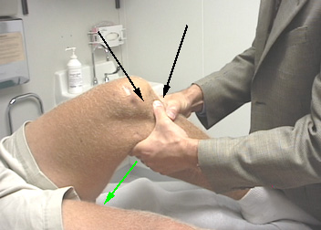 With the knee flexed to approximately 80°, verification of complete relaxation of the hamstrings is achieved by hamstring palpation. With the foot in neutral rotation and stabilized, a firm, but gentle posterior translation force is applied to the proximal tibia stretching the PCL.
