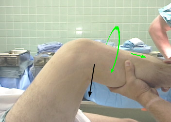 As the knee is gently extended the lateral tibial plateau will reduce with a clunk as the iliotibial band moves from a flexor of the knee to an extensor. If the test is repeated with the foot held in internal rotation, the sign disappears.